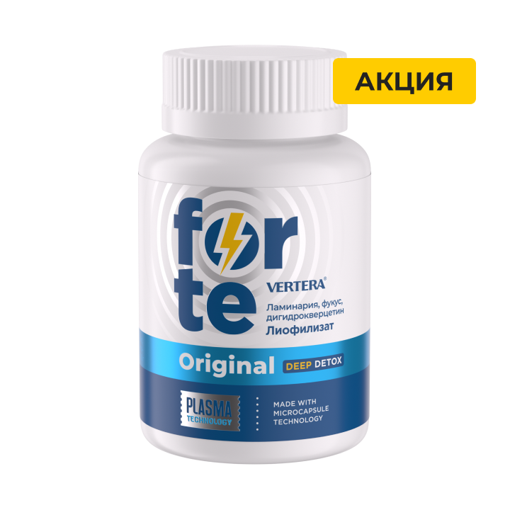Лиофилизат Forte Original — продукт синергии бурых морских водорослей и природного антиоксиданта дигидрокверцетина, способного усиливать действие полезных веществ ламинарии и фукуса.